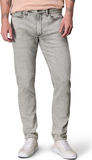 A light-grey wash and dark stitching bring casual-cool, vintage-inspired style to low-stretch jeans in a narrow, tailored fit from hip to hem.