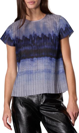 This boxy top is made of boldly printed organza that brings a little texture to your look.