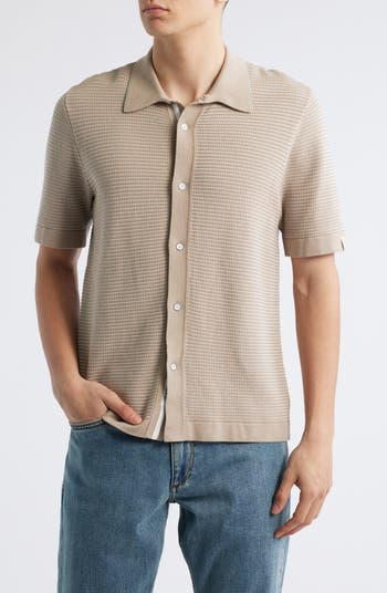 Harvey Jacquard Stripe Knit Short Sleeve Button-Up Shirt