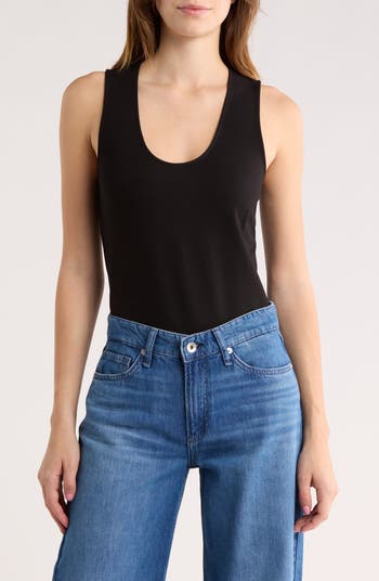 Build your outfit of the day or night-out look with this scoop-neck tank bodysuit cut from a stretchy ponte knit.