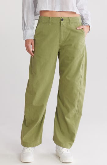 Go casual in high-waisted pants constructed in a flat-front silhouette from soft cotton sateen for daylong comfort.