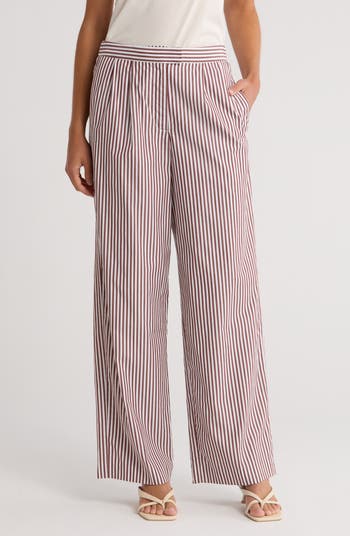Wide legs keep the look relaxed in these striped, pleat-front pants cut from crisp cotton poplin.