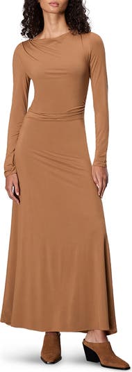 Luca Asymmetric Drape Long Sleeve Maxi Dress