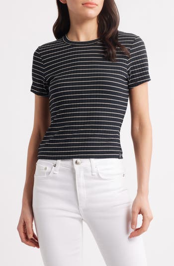 Make every day easy in this soft stretch-modal T-shirt designed with lively stripes for eye-catching appeal and allover ribbing for a close fit.