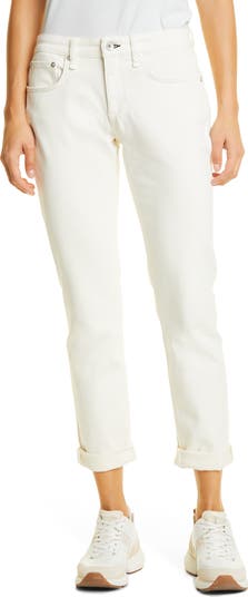 Rock a casual-cool vibe in these faded jeans finished with cool cuffed hems. The jeans feature a slim—not skinny—straight cut and sit below the natural waist. The knit is lightweight with four-way stretch using a loopback construction that mimics French terry.