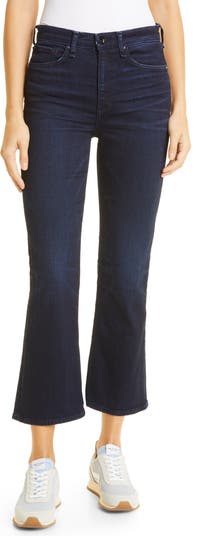Kick back in these casual-cool jeans that flatter your figure with a high waist and ankle-grazing flared hems.