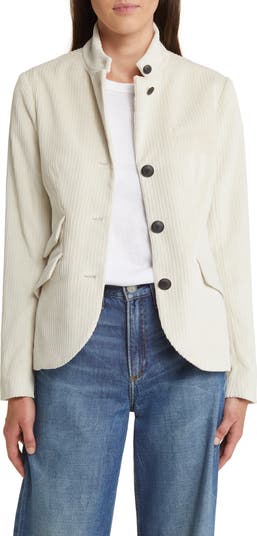 Opulent and velvety corduroy gives an elegant look to this on-trend blazer boasting tonal crested buttons.
