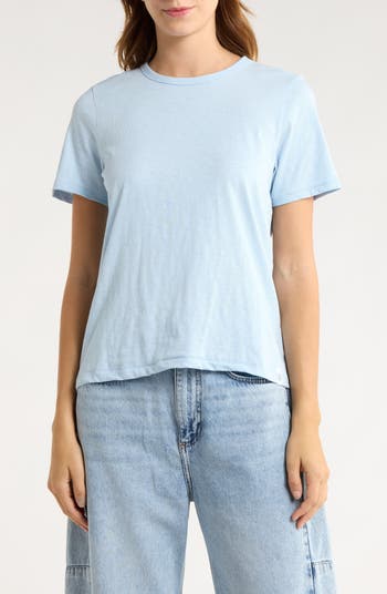 A casual-cool crewnneck T-shirt cut from slubbed cotton is sure to be a throw-on-and-go everyday favorite.