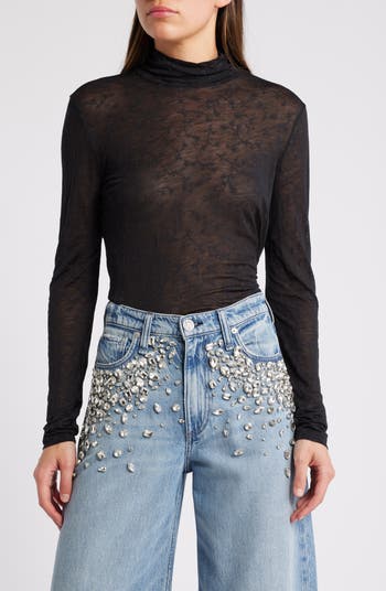 Delicate blooms lend tonal texture to a sheer cotton-kissed top that's lovely for layering.