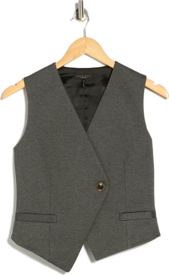 An asymmetric hem brings contemporary attitude to this one-button ponte vest that instantly polishes your look.