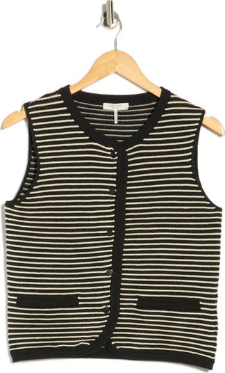 Bold stripes bring instant flair to this button-front sweater-vest knit from soft cotton-blend yarns.