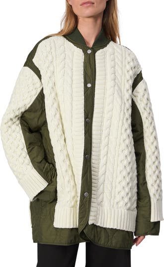 Walking through the changing seasons just got a whole lot cozier in this oversized jacket that features a classic cable stitch mixed with quilted ripstop. Its roomy fit allows for effortless layering, while the ribbed collar and snap front help keep the chilly elements at bay.