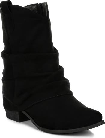 A slouchy, scrunched shaft enhances the rustic appeal of this western boot set on a chunky block heel.