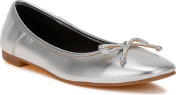 A dainty bow adds timeless appeal to a ballet flat updated by a shimmery metallic finish that illuminates your everyday looks.