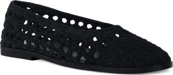 A woven leather flat fronted by an elegant round toe brings a relaxed appeal to your weekend style.