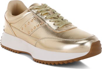 Studded hardware and a metallic finish lend visual interest to the upper of a sporty sneaker designed to comfort your every stride as you check items off your to-do list.