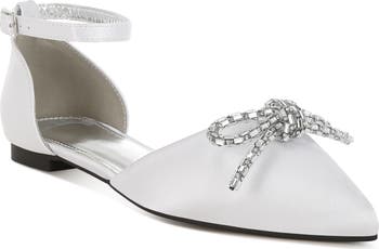 A rhinestone bow gives a special-occasion sparkle to this polished flat that boasts an adjustable ankle strap and elegant pointed toe.