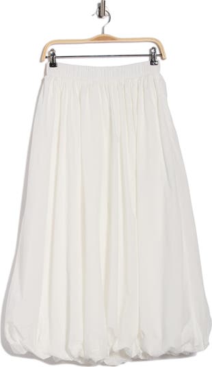 This cotton‑blend maxi skirt features a comfortable elastic waistband and a voluminous bubble hem for an effortlessly fun silhouette.