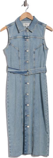 Bring an industrial touch to your off-duty 'fits in this sleeveless A-line dress cut from nonstretch denim.