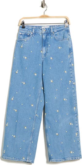 Refresh your casual-cool ensembles with these high-waisted jeans covered in embroidered blooms and cut in a cropped, straight-leg silhouette.