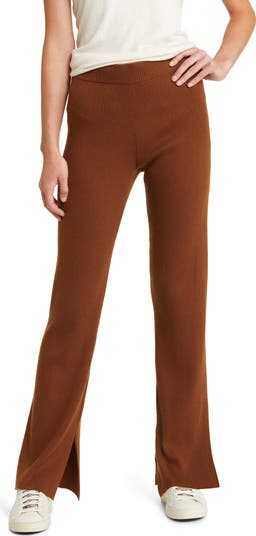 Level up your laid-back look in ribbed pants served with a kicky side slit and knit from a soft blend enriched with cotton and silk.