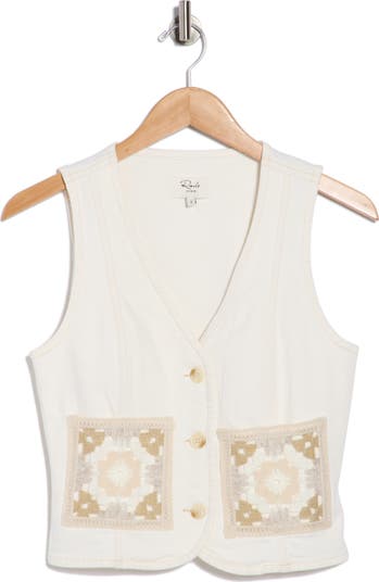 Granny-square patch pockets add utility and charm to this vest that's a trend-right pick to top off your look.