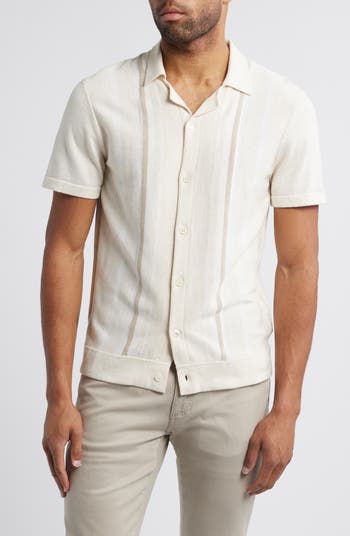 Mixed stripes bring maxed-out style to a camp shirt made of a soft, breathable cotton blend in a fit that's perfect for catching breezes on sunny days.