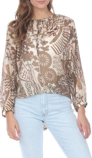 A high-low hem and relaxed fit give a sense of ease to a woven top rendered in an eye-catching print to update your day-off attire.