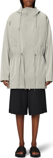 An indispensable water- and windproof raincoat gets you through your errands that can't/won't wait for the weather to cooperate. Featuring a brimmed hood, a drawcord-adjustable waist and fishtail notches at the storm flap and back hem, this coat expects the worst, so you can focus on your to-dos.
