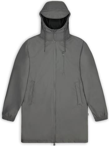 This sporty and contemporary update on the classic rain jacket keeps you dry with lightweight, waterproof fabric. Under-arm eyelets ensure ventilation and breathability while a drawstring hood with built-in brim offers added coverage in sudden downpours.