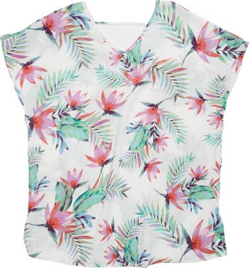 Pretty prints and delicate details style a cozy caftan to cover-up between swim breaks.