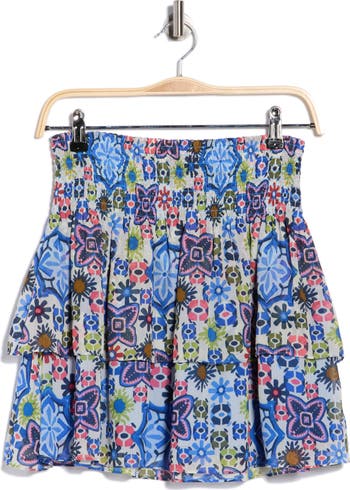 The smocked waist cascades into a layered skirt for effortless movement in this flirty miniskirt.
