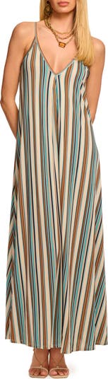 This striped maxi is suspended by slender, adjustable straps for support and is crafted from lightweight fabric for comfort and a smooth drape.