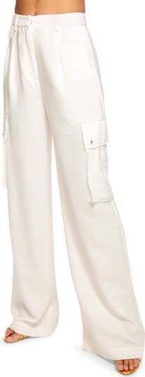 Cargo-style pockets lend practical appeal to high-waist pants kept free-flowing with a wide-leg silhouette.