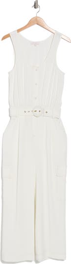 Get to the fun faster in a one-and-done jumpsuit traced in topstitching and cinched with a matched belt.