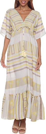 A waist-cinching tassel tie and single-tier silhouette enhance the flowy shape of this cover-up maxi dress that'll have all eyes on you at your next resort stay.