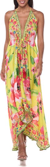 Strut from the resort to the pool in this vibrant cover-up maxi dress that's sure to be added to your vacay packing list.
