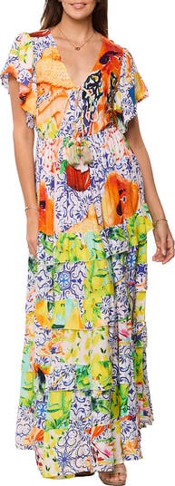 Perfect for your next weekend occasion or vacation, this breezy maxi dress is styled with a deep V-neckline and flutter sleeves.