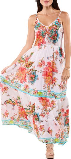 This floral-print dress in a maxi length with a tiered hem is perfect for warm-weather days.