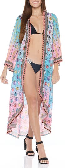 Whether you're heading to the beach or strolling the resort, this long, flowy duster bursting with a vibrant Lady Bug design will keep you looking chic and feeling comfortable.