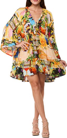 This flare-sleeve dress in a mini length covered in a vibrant print is perfect for warm-weather days.