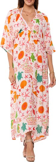 Easy-breezy and full of cabana-ready style, this vibrant sea-creature-covered caftan is ready for fun in the sun.
