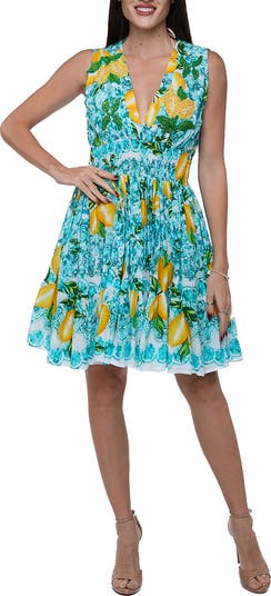 Summery lemon printing and a smocked waist define this breezy minidress perfect for weekend events or your next trip.