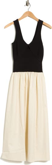 A ribbed bodice designed to fit snugly contrasts the crisp cotton-poplin skirt of this mixed-media maxi perfect for anything from brunch to garden parties.