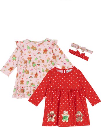 Baby can celebrate all-season long in this festive set of two dresses and headbands that can be mixed and matched for even more fun.