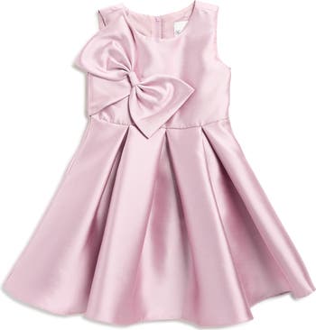 A large bow channels the coquettish aesthetic at the front of a party dress crafted from luxe mikado fabric that gives off a subtle sheen.