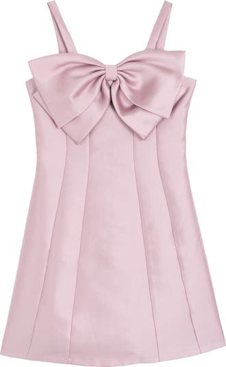 Your little darling will steal the spotlight in this picture-perfect party dress framed by an oversized bow at the neckline and shaped with bold vertical seams for a softly flared silhouette.