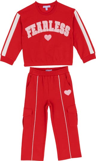 They'll be fearless on the playground or at the gym in this matching fleece set featuring an appliquéd sweatshirt paired with cargo pants.