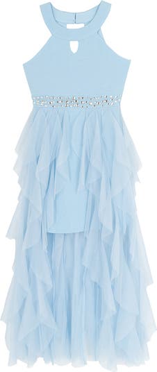 Glittery fabric, crystal embellishments and a tiered skirt lend party-ready vibes to a woven dress that's sure to inspire endless twirls.