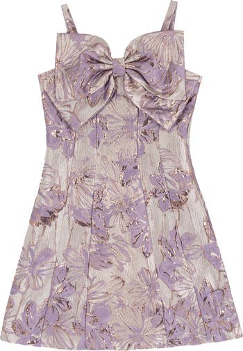 A party-ready dress fashioned from brocade fabric imbued with metallic thread is sure to delight your budding fashionista.